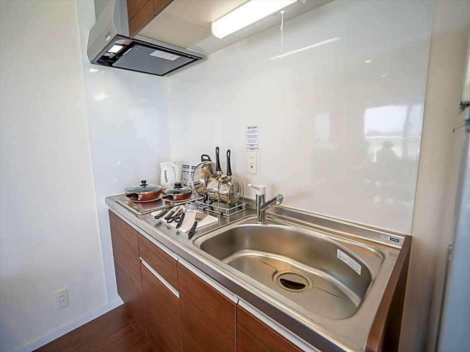 Each guestroom is thoughtfully equipped with air conditioning, a flat-screen TV, a microwave, a refrigerator, an electric kettle, a hairdryer, and a wardrobe. All accommodations feature a private balcony overlooking the scenic yacht harbor, along with a private bathroom. Every room includes a fully equipped original kitchen and an in-room washing machine, making extended stays practical and comfortable. Complimentary Wi-Fi and on-site parking are available for added convenience.